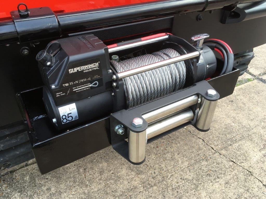 An AS ladder gantry is fitted to the roof to carry a double extending ladder It is also fitted with bull bar and 2500kg electric winch.