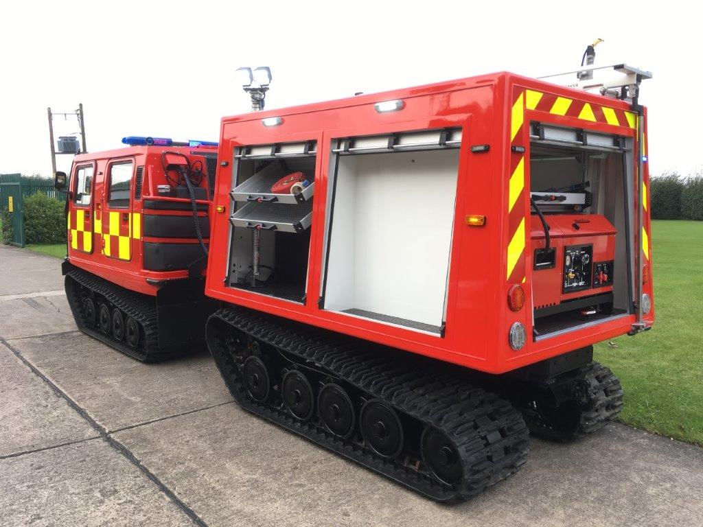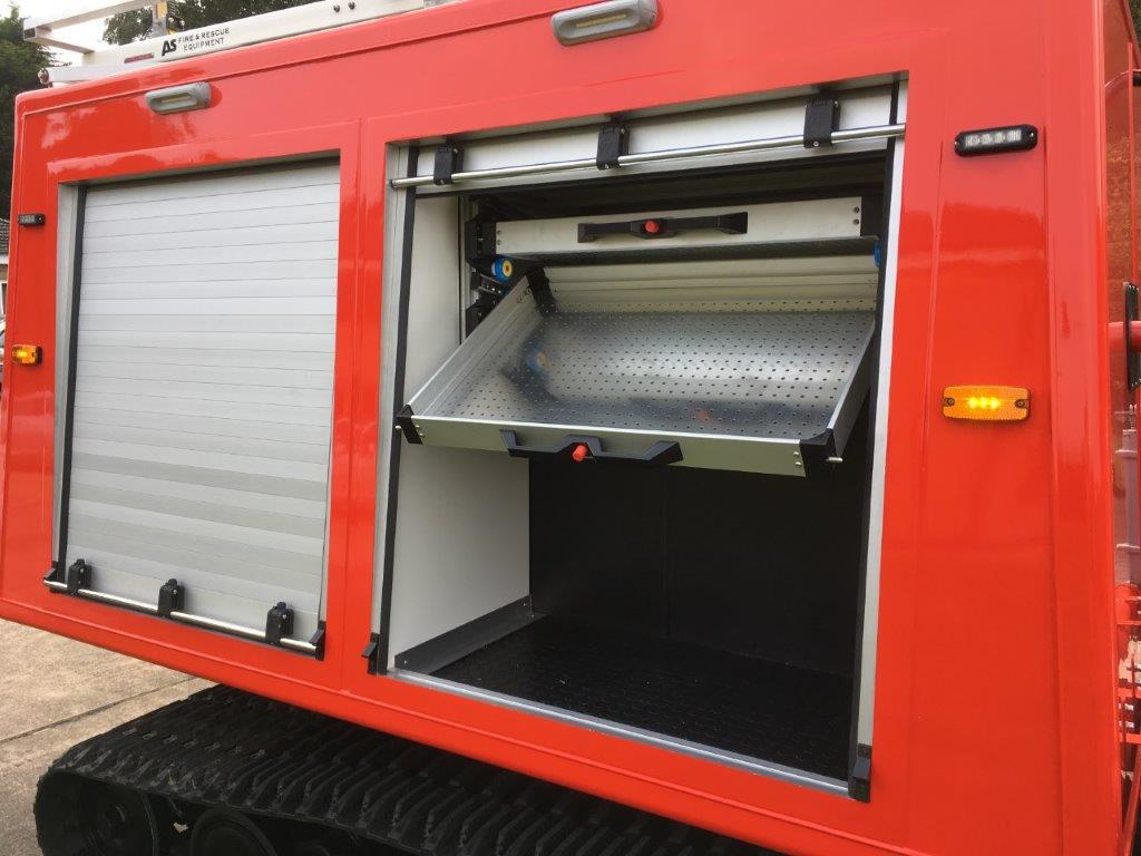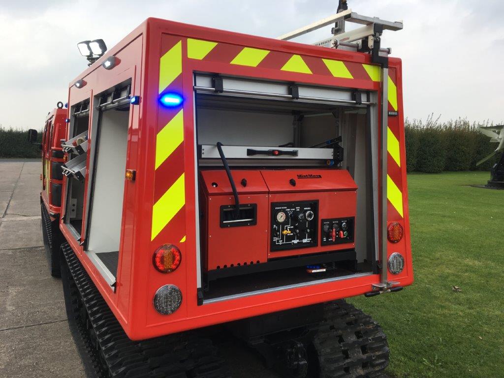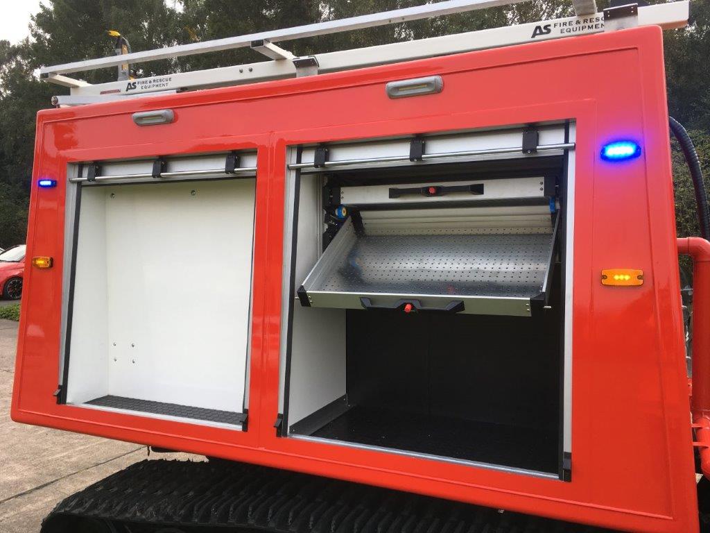 The vehicle has bespoke built body with roller shutters and an integrated 800L-1000L tank which is mated to an number of fire fighting units available and which gives a prolonged fire fighting capability.
