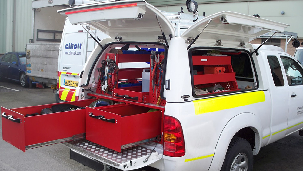 We can also supply and fit the truck man top pictured with a range of different storage systems and a range of colours.